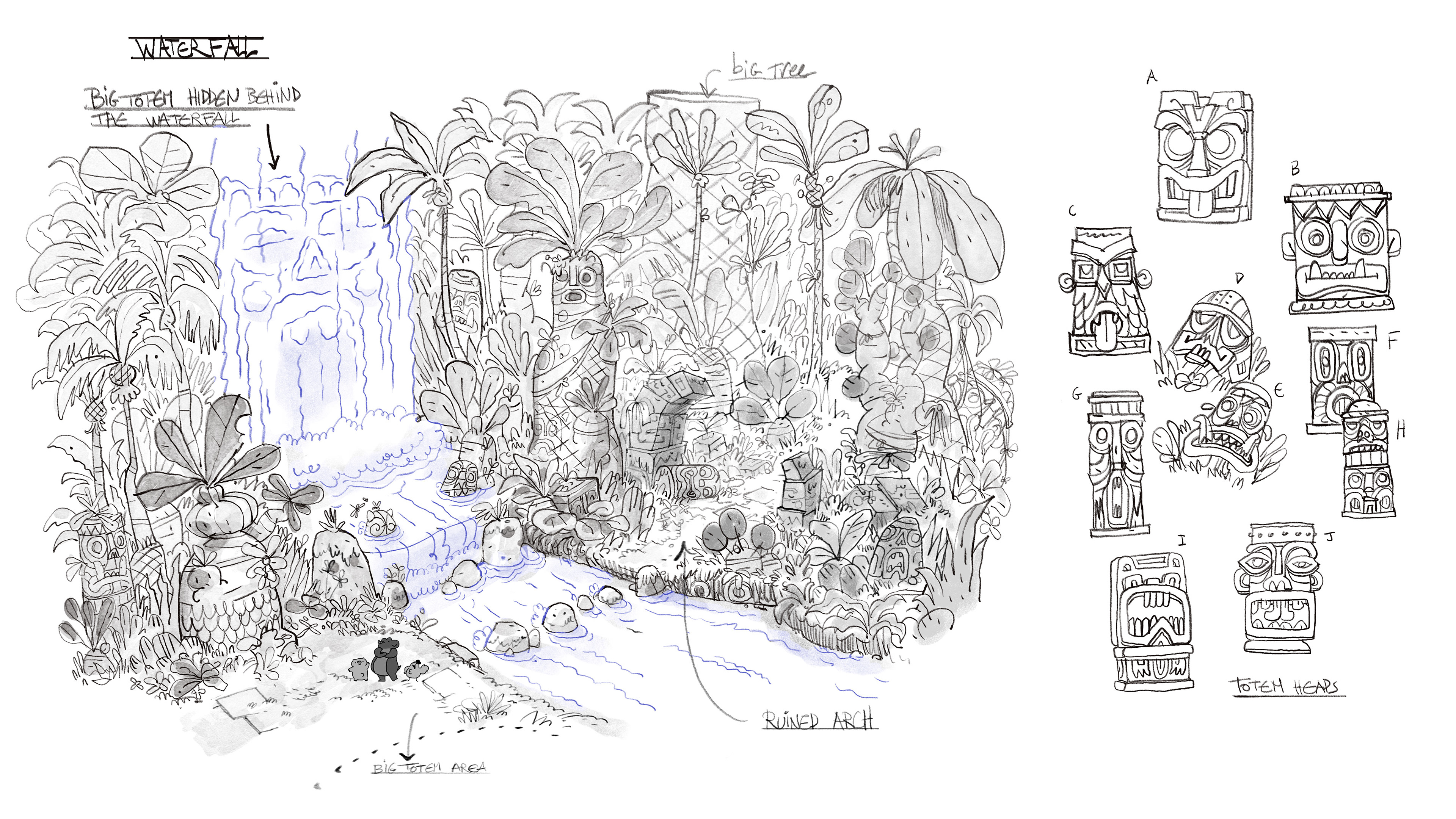 I had clear how to space should look because it was important to give the feeling of a transition. From the beach to the interior of the jungle