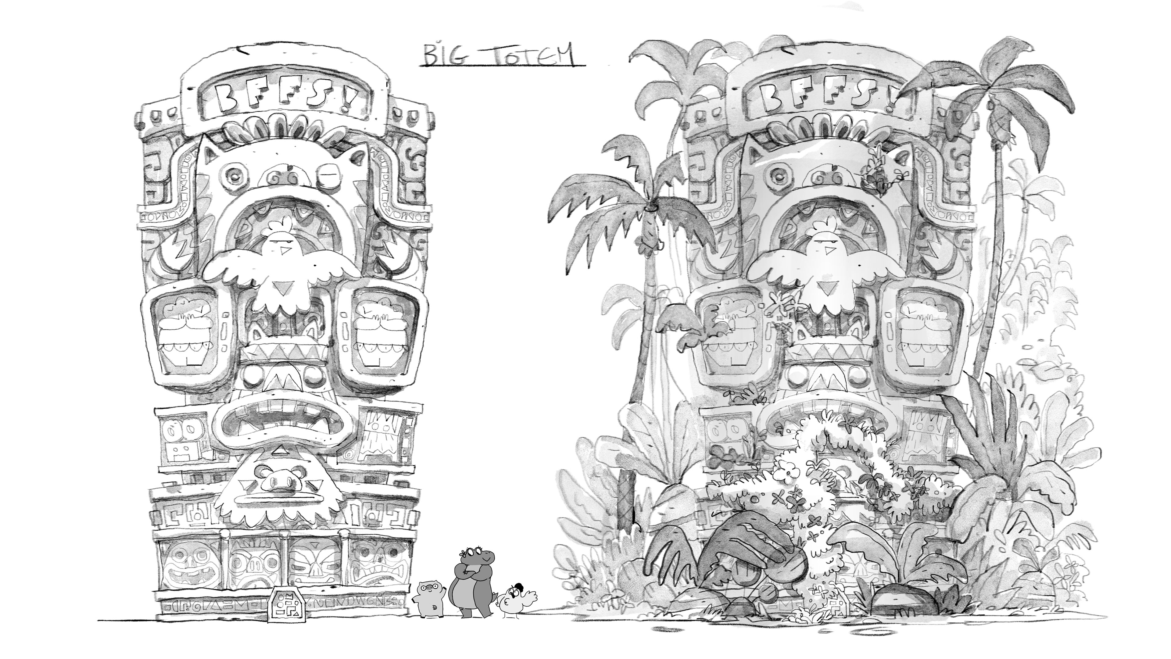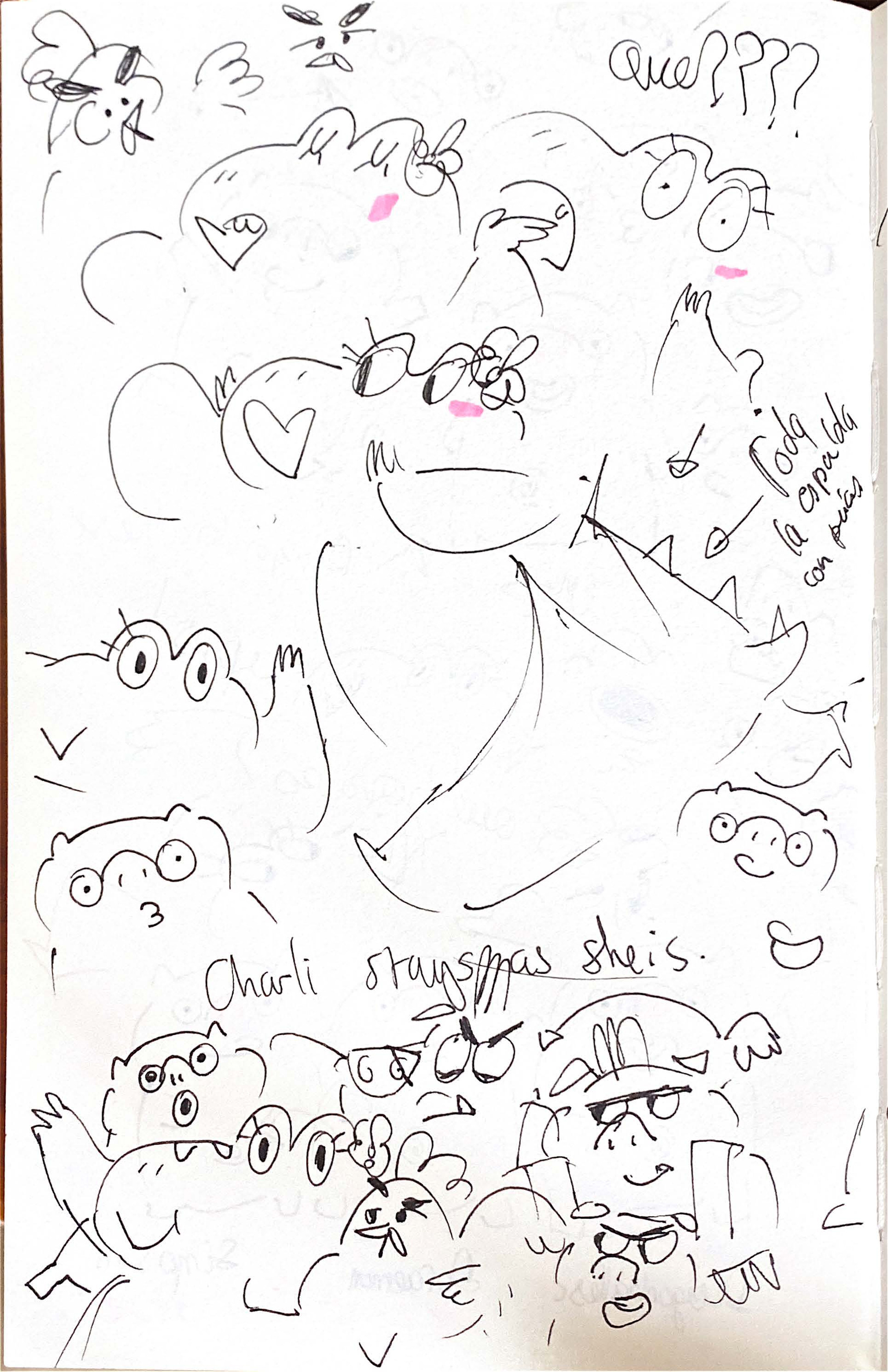 These are the first steps, trying to figure out the look of the characters :). We already had an idea of how they were, but it's always good to explore them a bit more and then I show a bit below some development and design for Frank, the chicken.